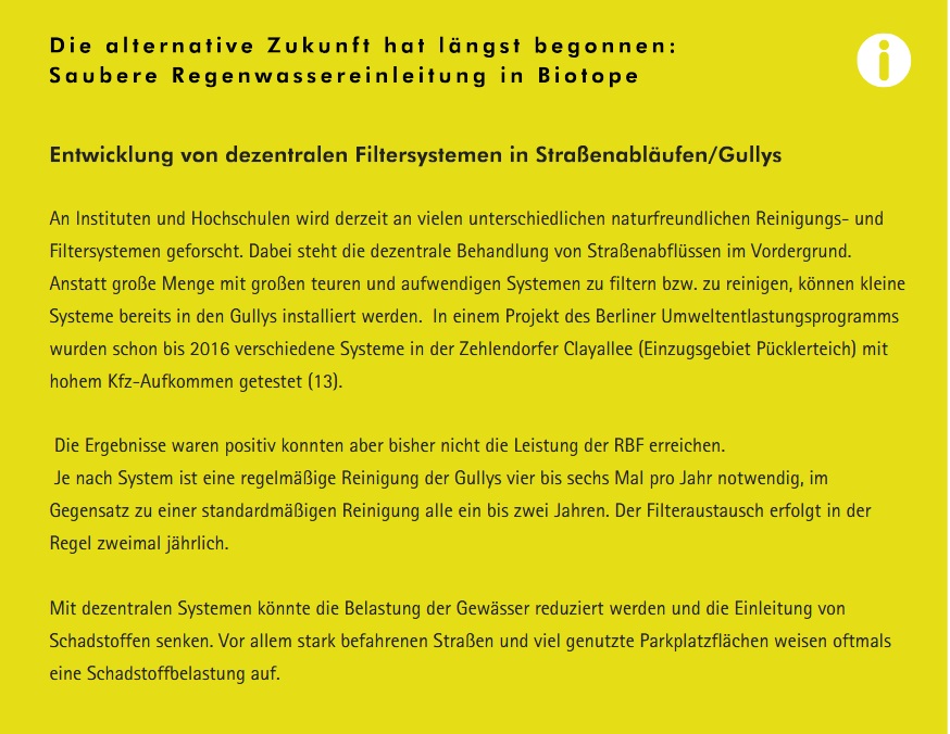 Im Gegensatz zu anderen Bundesländern hat Berlin keinen gebührenfinanzierten Wasser- und Bodenverband der Wasserrenaturierungsmaßnahmen aus diesen Gebühren heraus finanziert.