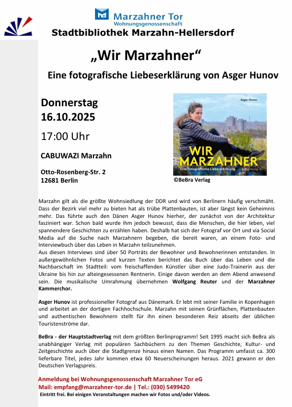 Wir Marzahner – Veranstaltung mit Asger Hunov u.a. | (Anmeldung über WG Marzahner Tor)