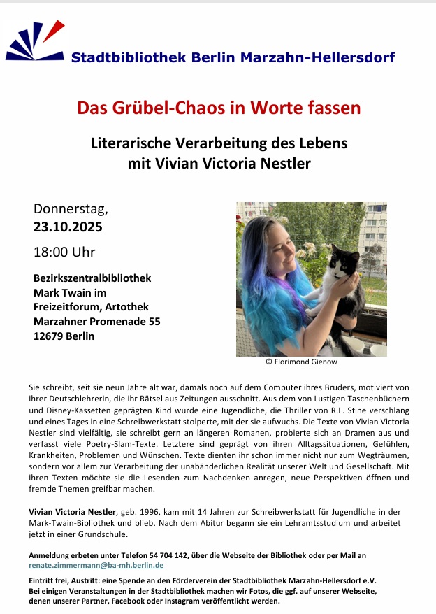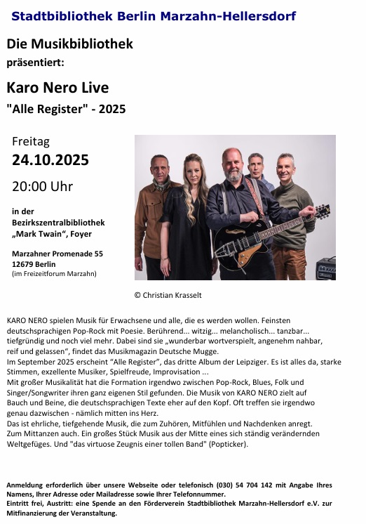 Eintritt frei, Austritt: eine Spende an den Förderverein der Stadtbibliothek Marzahn-Hellersdorf e.V.