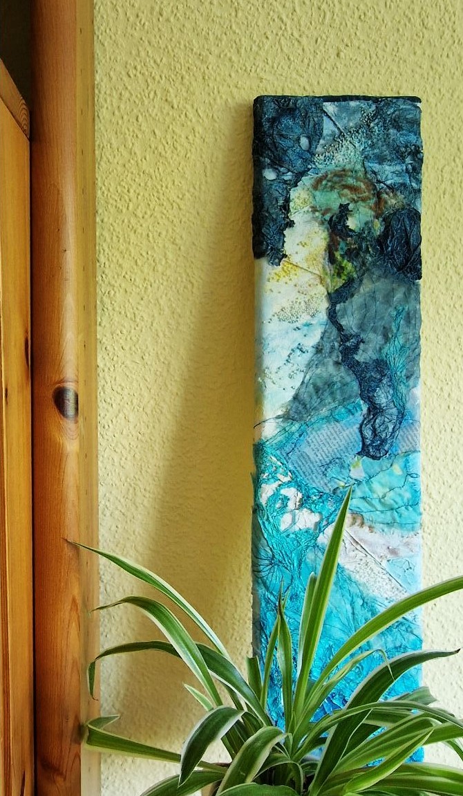 In Kursen und Workshops bei verschiedenen KünstlerInnen hat sie sich weiter gebildet. Im Zentrum ihres Schaffens stehen Mixed-Media-Techniken: