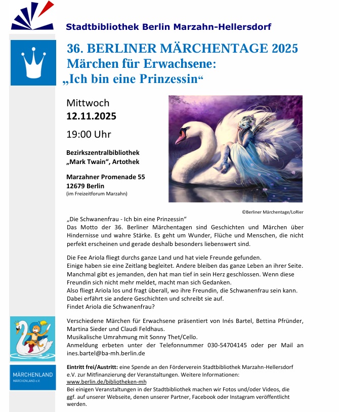25.10.25 Das Motto der 36. Berliner Märchentagen sind Geschichten und Märchen über Hindernisse und wahre Stärke. Es geht um Wunder, Flüche und Menschen, die nicht perfekt erscheinen und gerade deshalb besonders liebenswert sind.