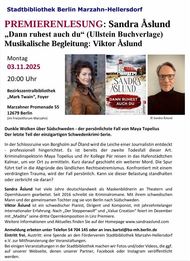 Premierenlesung Sandra Åslund „Dann ruhest auch du“ mit Musik Viktor Åslund