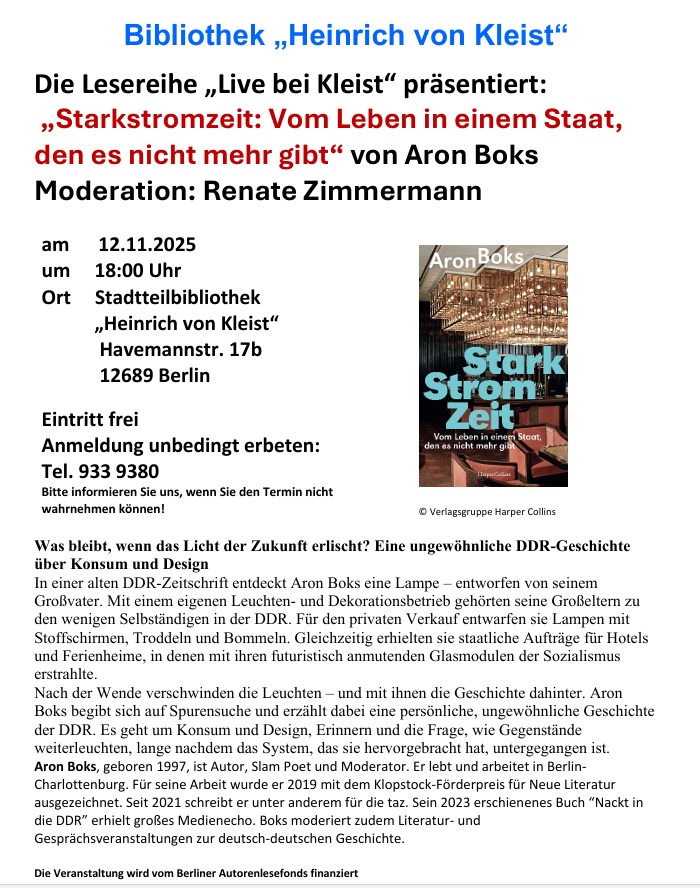 Live bei Kleist präsentiert: Aron Boks "Starkstromzeit" Lesung und Gespräch