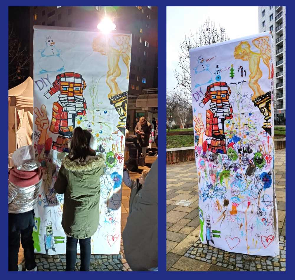 19.12.25 Kinder und Erwachsene verewigten sich mit viel Kreativität am 28. November beim "Feurigen Advent" auf der Stelenhusse. Das war ein gemeinsames Projekt des Frauentreffs HellMa und der Galerie M sowie zahlreicher kleiner und großer Besucher im Rahmen des Bundesprogramms Demokratie Leben.