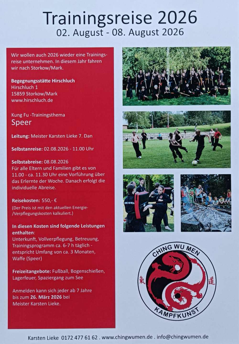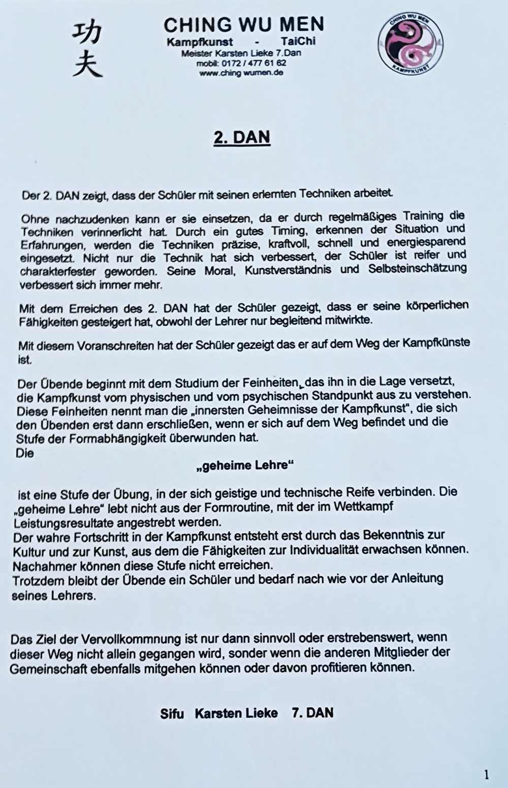 17.02.26 Anfänger können natürlich schon an der diesjährigen Trainingsreise vom 2. bis 8. August 26 der Kampfsportschule Ching Wu Men teilnehmen. Wer aber den 2. DAN im Kung Fu erwerben möchte, benötigt dazu mehrere Jahre.
