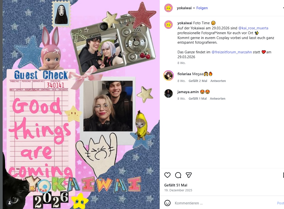 Natürlich gibt es auch ein großes Cosplay Contest der Yokaiwai. Die Jury besteht aus echten Profis der Anime- und Cosplay-Szene - erfahren, kreativ und absolut leidenschaftlich. Also jetzt schon am Kostüm basteln!