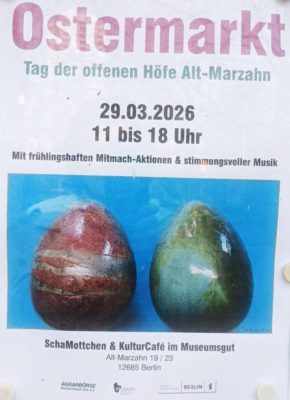 28.03.26 Der Ostermarkt und Tag der offenen Höfe in Alt-Marzahn findet am Sonntag, dem 29. März, statt. Besucher erwartet von 10 bis 18 Uhr ein kunsthandwerklicher Markt auf dem Gelände des KulturGut Alt-Marzahn mit Tierhof, Führungen auf dem Mühlenberg und verschiedenen Mitmachaktionen für Familien.