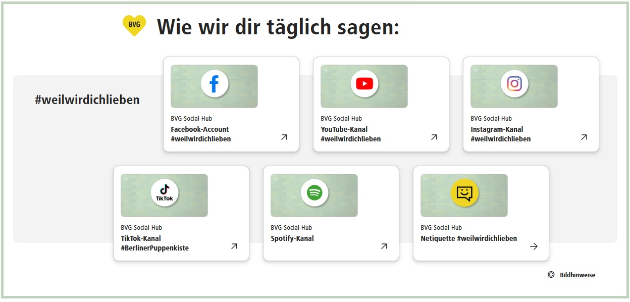 Berühmt wurde die BVG nicht nur für ihre gelben Fahrzeuge, sondern auch für ihren legendären Slogan: „Weil wir dich lieben“. Dieser Satz ist so charmant, dass man fast vergisst, dass man seit 12 Minuten auf die U8 wartet.