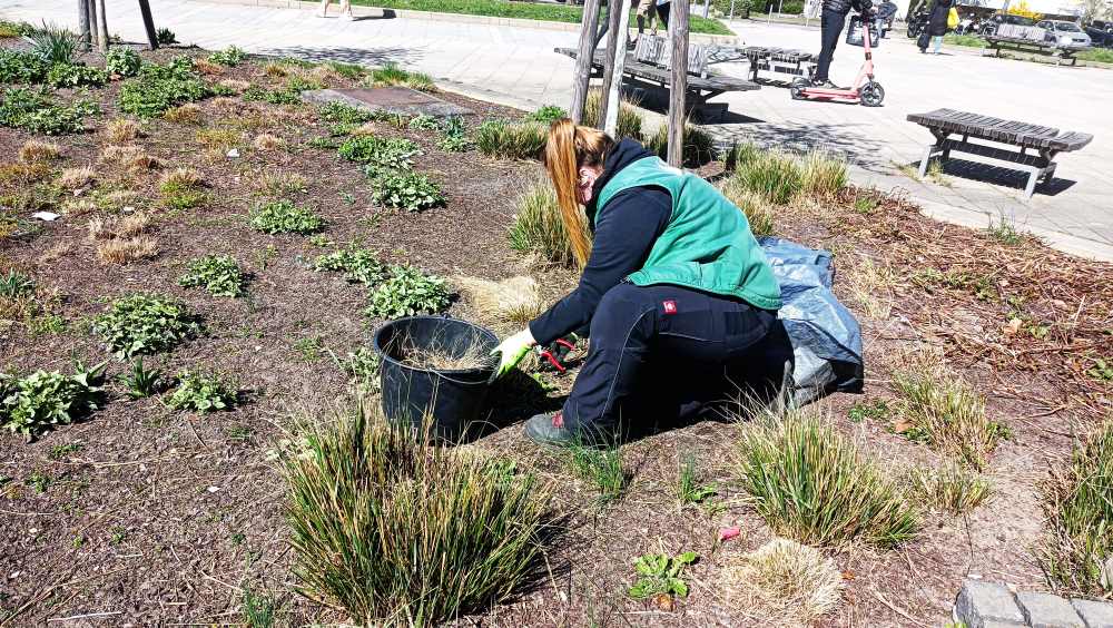 15.04.26 Es braucht mehrere Tage mühevoller Arbeit, bis eine Rabatte von Unkraut und Winter-Welkem gesäubert ist. Natürlich tut dann abends der Rücken weh.