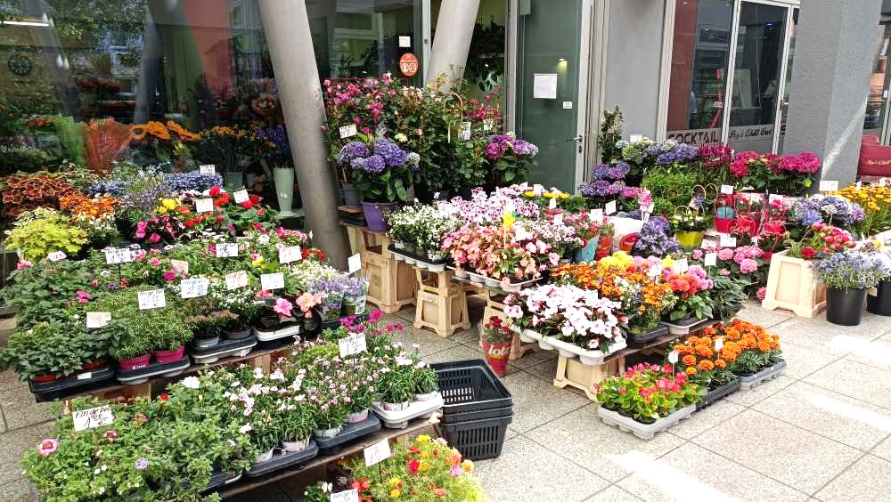 Die Blumenauslagen sind immer wieder ein Hingucker - müssen aber jeden Morgen rausgestellt und am Abend wieder reingestellt werden. Viel Arbeit!