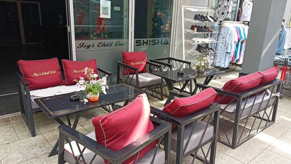 Echte Blumen auf den Tischen und weiche schöne Kissen macht das Verweilen bei der Ysis Bar angenehm.