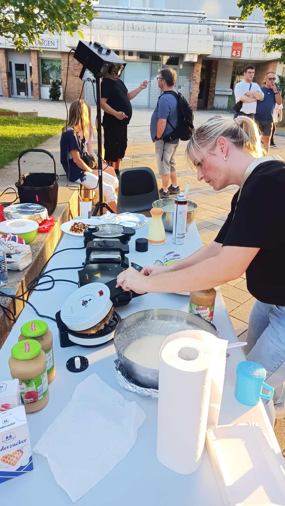 Es gab auch frisch gebackene Waffeln. Tanzlehrer animierten zu bestimmten Tänzen, gaben leichte Tanzschritte vor, viele Tanzlustige machten mit.