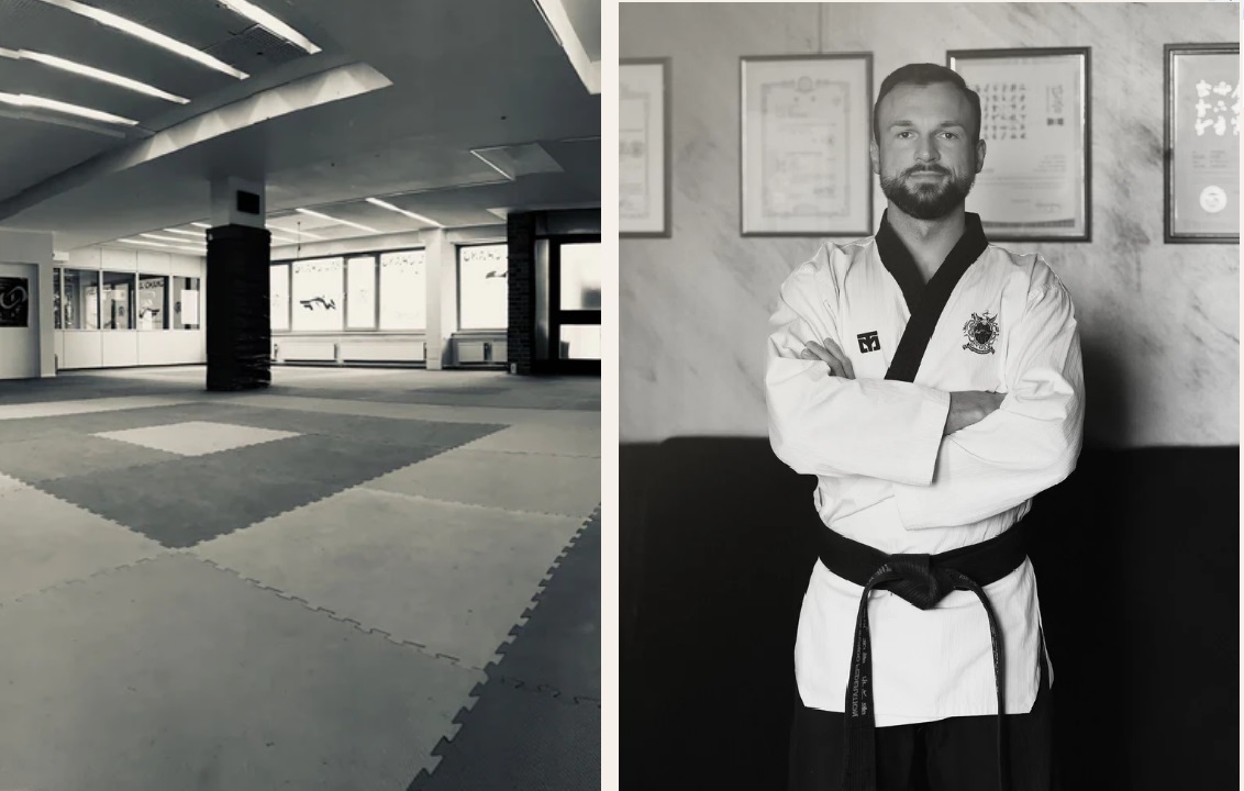 Matthias Rex, 5. Dan – Taekwondo, 1. Dan – Haidong Gumdo, und Trainingsraum der Kampfsportschule "Pal Chang".