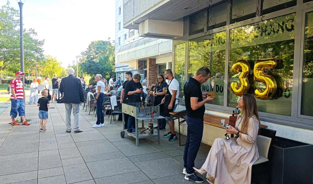 35 Jahre Bestehen feierte die Kampfsportschule Ende September. Dabei wurde nicht nur gut gegessen, getrunken und miteinander geredet. Matthias Rex stellte auch die neue Kollektion der Sportschule vor, die die inneren Werte des Kampfsportes sichtbar nach außen tragen.