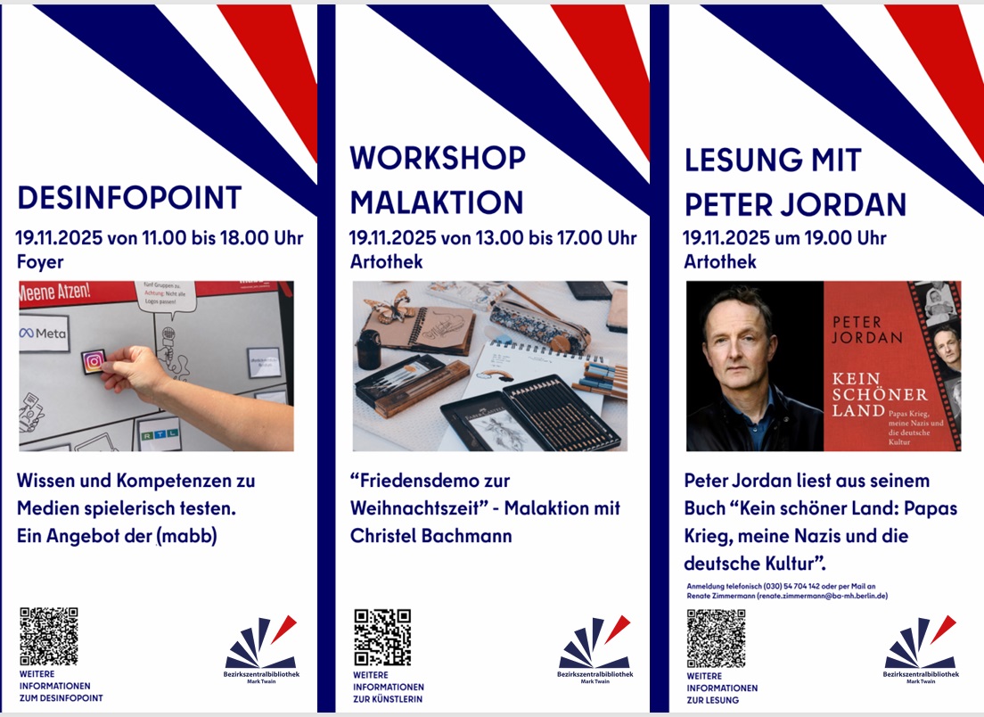Das Veranstaltungs-Programm der Mark-Twain-Bibliothek im November ist wieder vorbereitet und lädt ein zu unterschiedlichsten kulturellen Angeboten, auch zum Mitmachen.