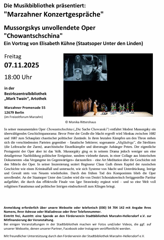 Marzahner Konzertgespräche: Modest Mussorgsky's Oper "Chowanschtschina"