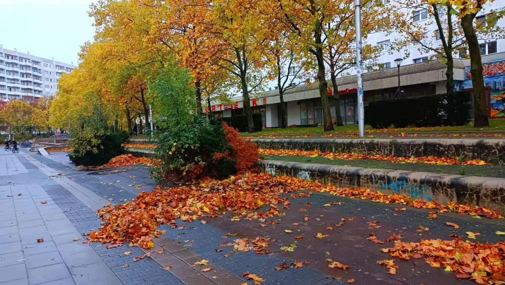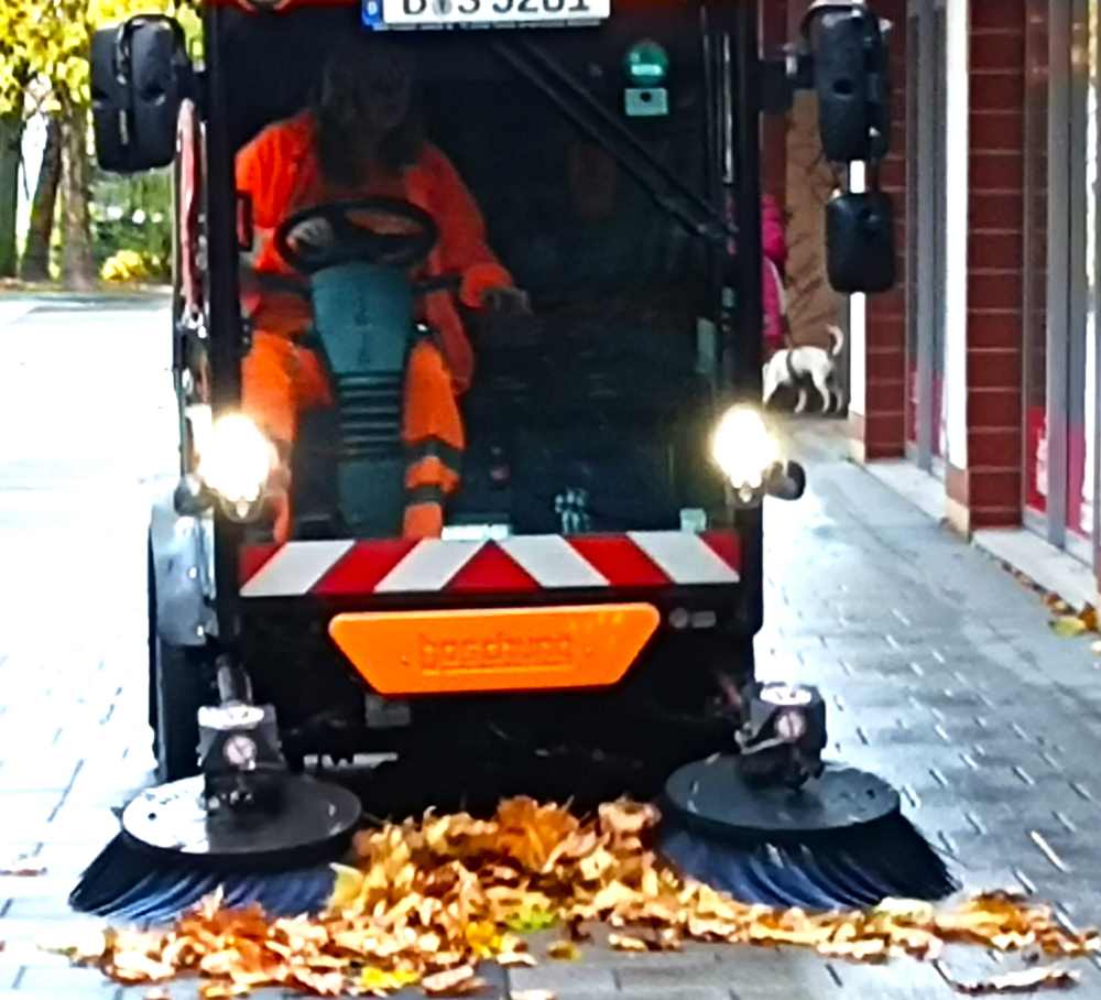 Aber gleichzeitig auch der BSR, deren kleine Blättersaugmaschinen jetzt unermüdlich durch die Wege huschen, das abfallende, chaotische Getümmel ordentlich einzusammeln.