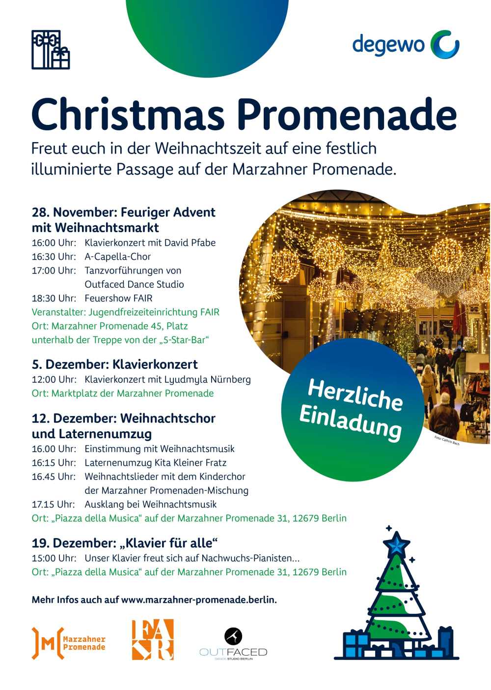 Um über das Christmas-Feier-Programm zu informieren und noch einige Koordinationen vorzunehmen lädt Promenadenmanager Holger Scheibig, degewo, am 18. November um 10 Uhr in die Kampfsportschule "Pal Chang" zum Promenadenfrühstück ein.