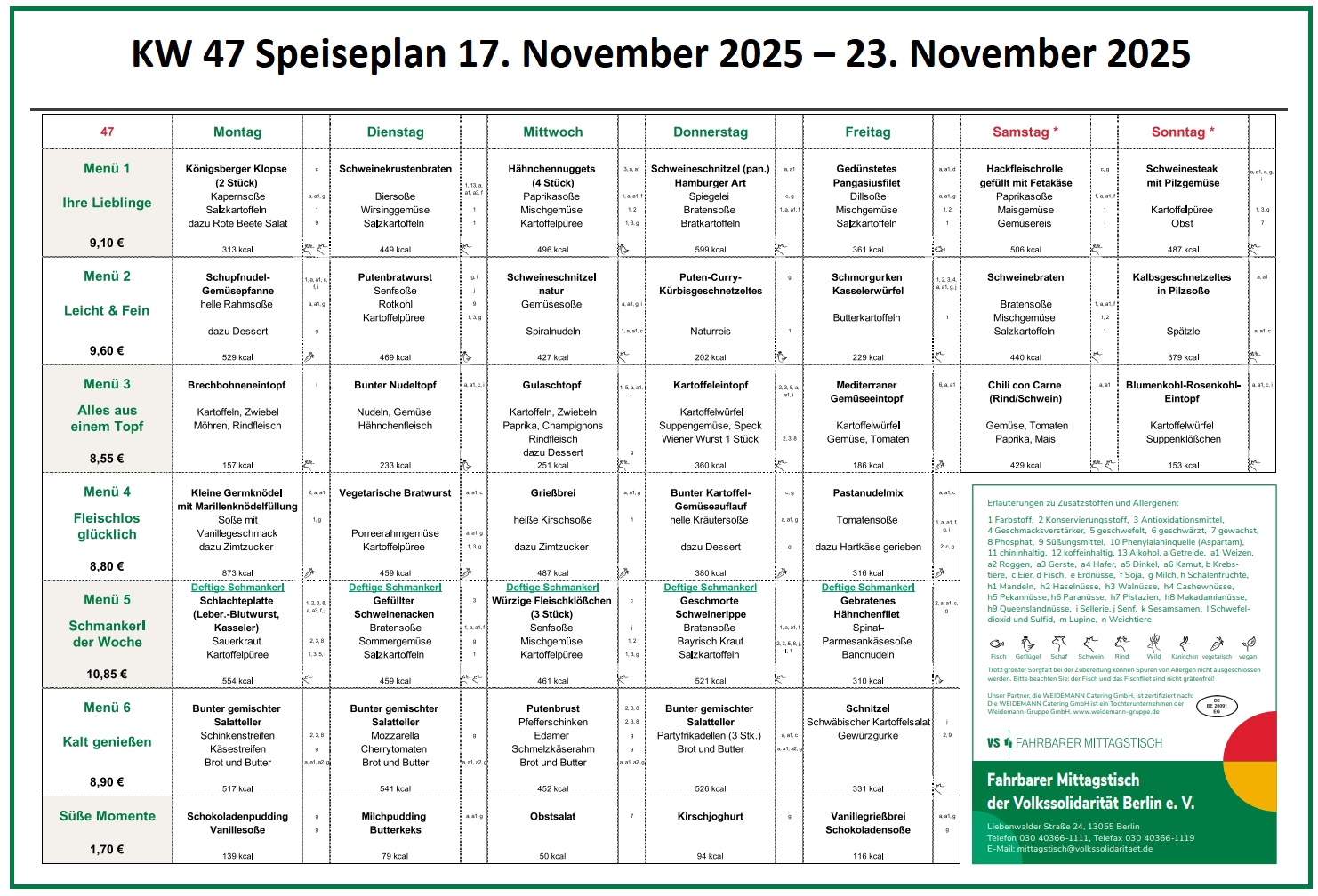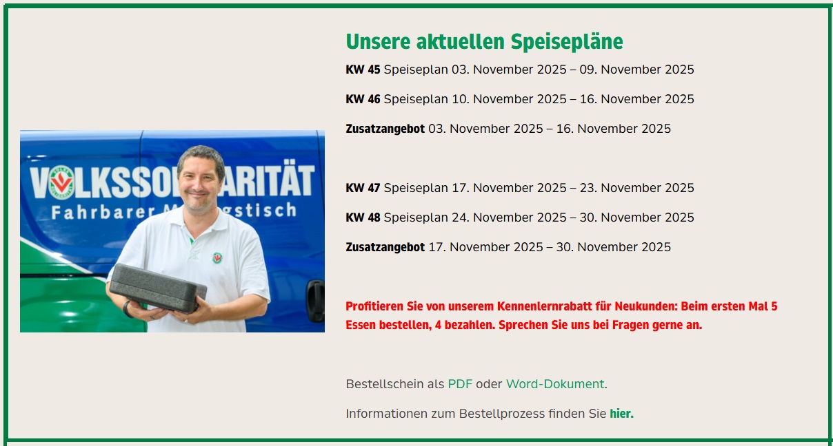 23.11.25 Frisches Essen auf dem Tisch, ohne selbst zu kochen oder einzukaufen: Der fahrbare Mittagstisch der Volkssolidarität Berlin versorgt Sie im Norden, Osten und Süden der Hauptstadt.