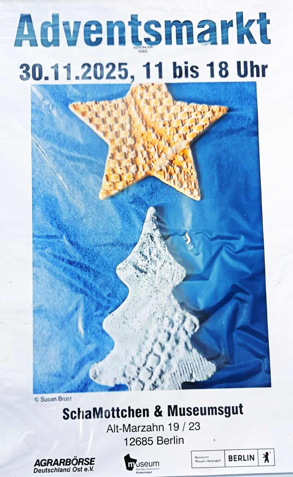 28.11.25 Die Vorbereitung laufen schon lange in den Höfen und Kultureinrichtungen in Alt Marzahn. Am Sonntag ist im Angerdorf von 11 bis 18 Uhr Adventsmarkt. SchaMottchen und Trödelscheune sind natürlich auch geöffnet.