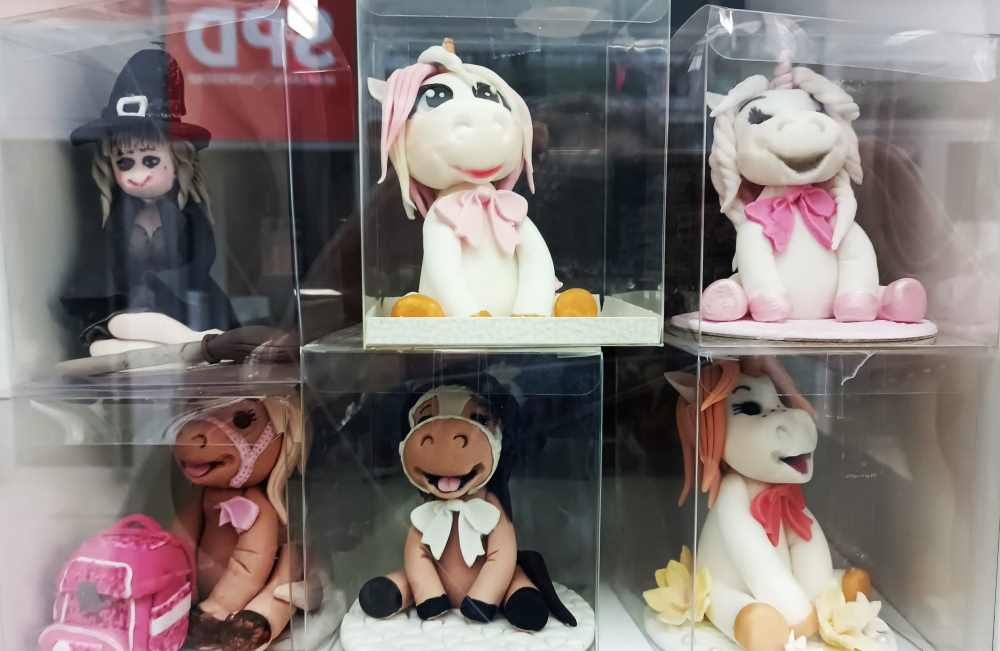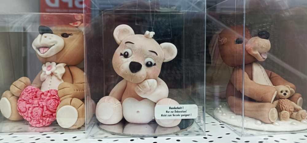 Die Tortenschmiedin Franziska Schmidt kann nicht nur Torten "schmieden", sondern bietet auch geformte Zuckerteilchen-Unikate an, ca. 10-15 cm groß, die zahlreiche Figürchen zeigen, die Kinderherzen höher schlagen lassen. Stück 25 Euro, in gut transportierbare und schützende Plastikboxen verpackt.