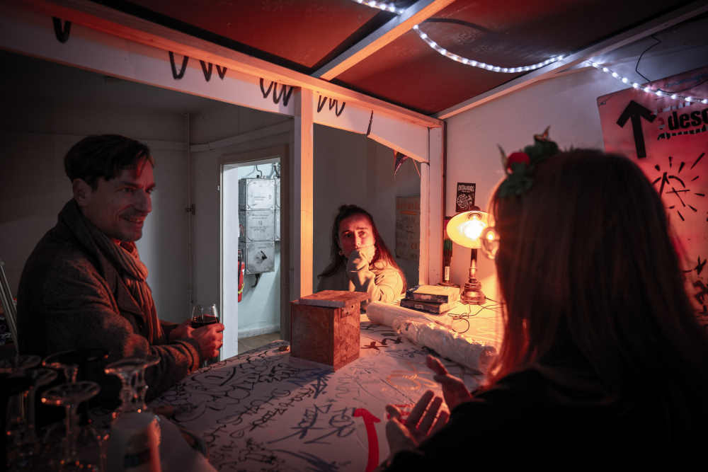 Smal-Talk am selbstgebauten Tresen.