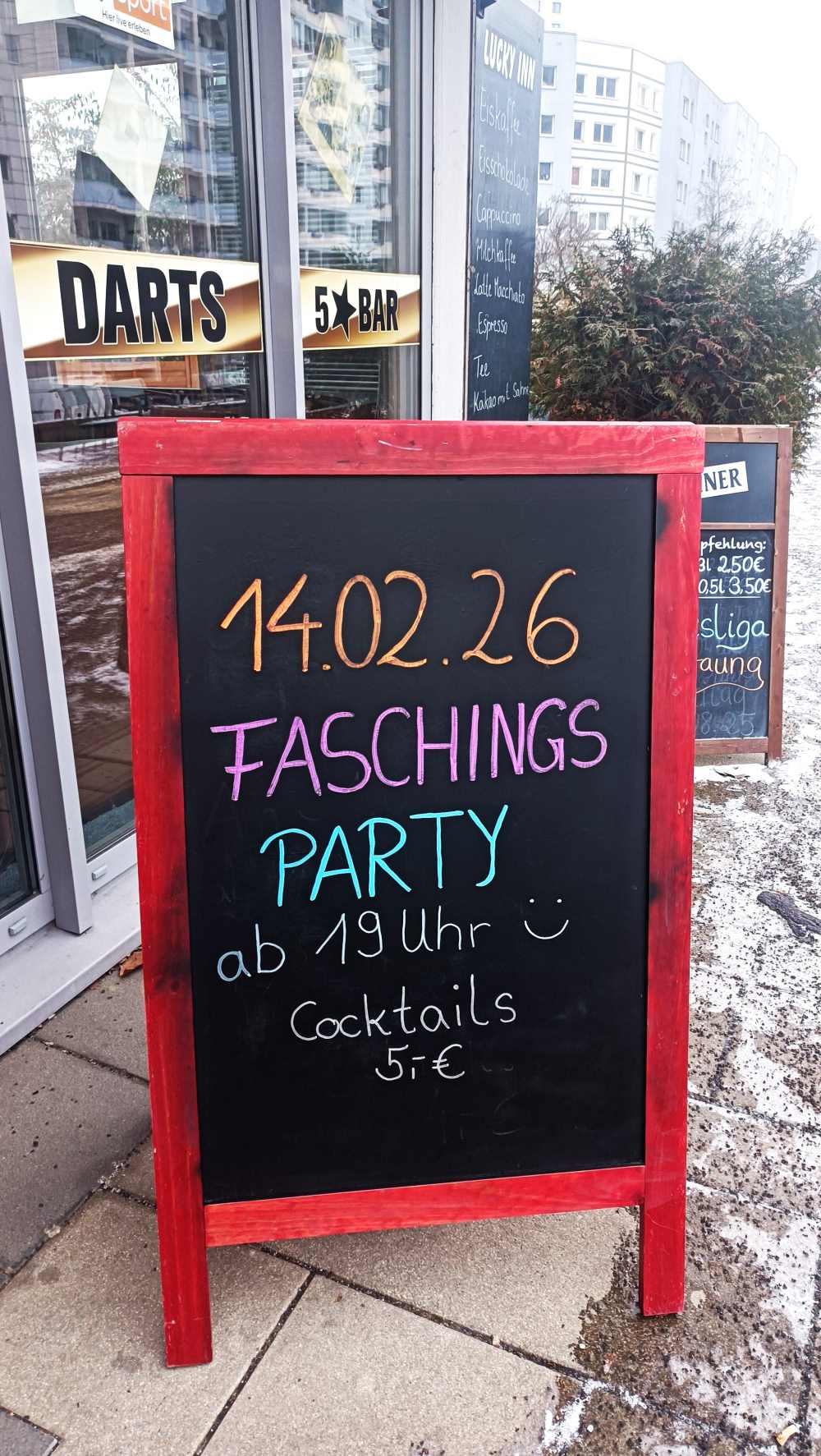 Es wird Fasching gefeiert. Eventuell auch ein wenig Valentinstag. Denn die Mitarbeiter der Bar dekorieren die Einrichtung immer mit viel Liebe, Mühe und Können dem Motto entsprechend.