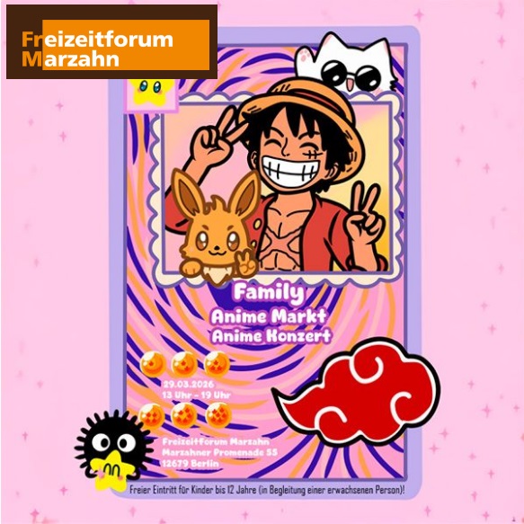 25.02.26 Zum ersten Mal im Freizeitforum findet am 29. März 2026 ein Family-Anime-Markt und -Konzert statt. Eine Anime-Fangemeinde gibt es ja schon seit Jahren in der Zentralbibliothek im FFM-Haus. Doch dieses Treffen wird viel größer.