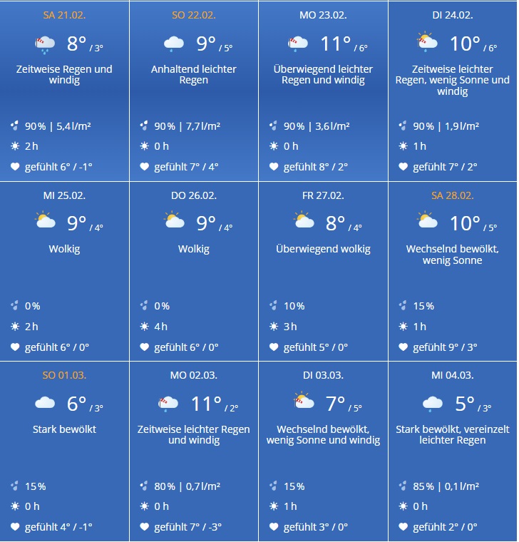 21.02.26 Auch die Fahnen am Eingang zur Marzahner Promenade von der Raoul-Wallenberg-Straße aus haben es nicht leicht bei diesem Wetter. Zumal der Wind heute wieder stürmischer werden soll. Die Kälte und Nässe zerren an den Nerven der Menschen und ebenso am Stoff.