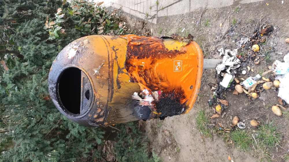 Wenn auch die Promenade weniger im Polizeibericht auftaucht, ab und an gibt es hier doch schon mal Bambule. Manche Jugendlichen finden es super, mit Schreckschusspistolen zu ballern und auch mal einen Müllbehälter anzuzünden wie hier neben der öffentlichen Toilette neben TEDi.