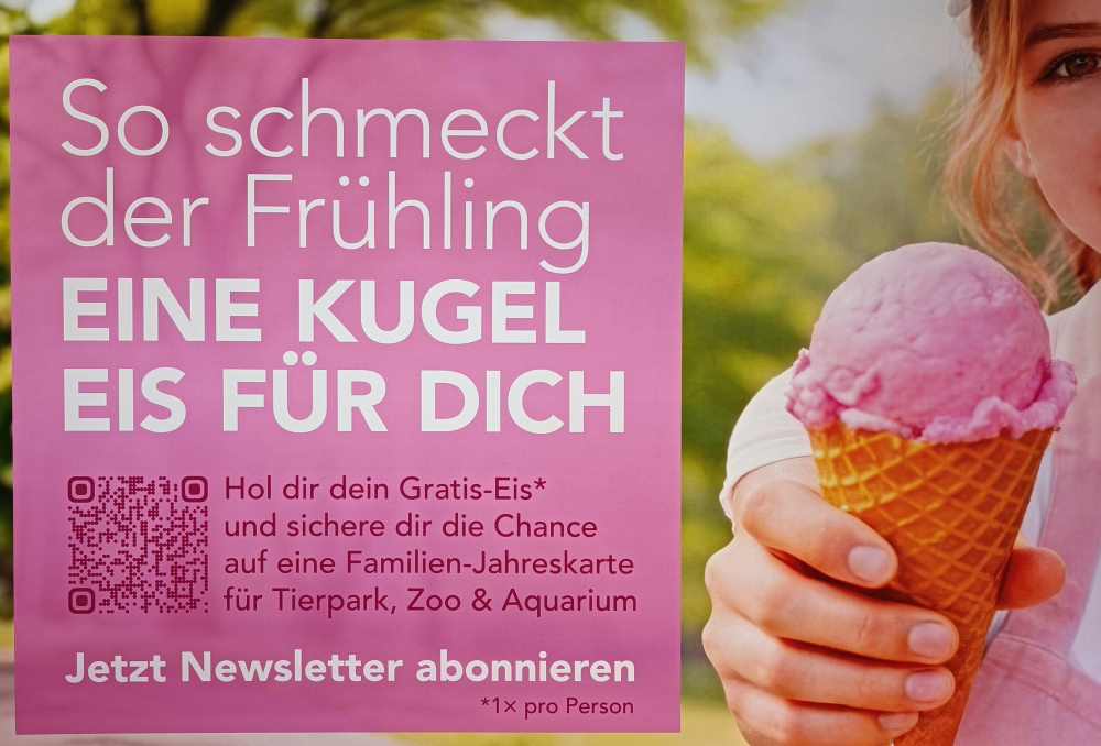 Wer über die Aktivitäten im Eastgate auf dem Laufenden bleiben und immer das Neueste erfahren möchte, melde sich für die Newsletter an. Und das Beste, jetzt im Frühling gibt es dafür ein Eis gratis, die Chance auf eine Familien-Gratiskarte für Tierpark, Zoo und Aquarium - sowie mit etwas Glück 200 Euro. Dafür muss man nur wissen "Wie heißt die Aktion, bei der ein Klavier für alle bereitsteht?" - Gewinnspiel April